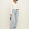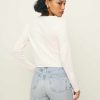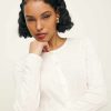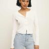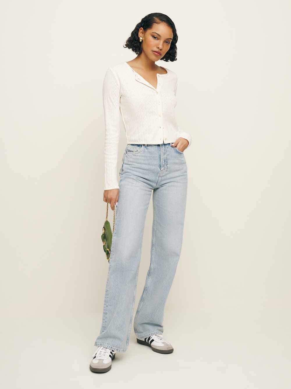 Throw it on when you’re running kind of late. Shop the Ari Pointelle Knit Cardigan from Reformation, a long sleeve, button front cardigan with a crew neckline.