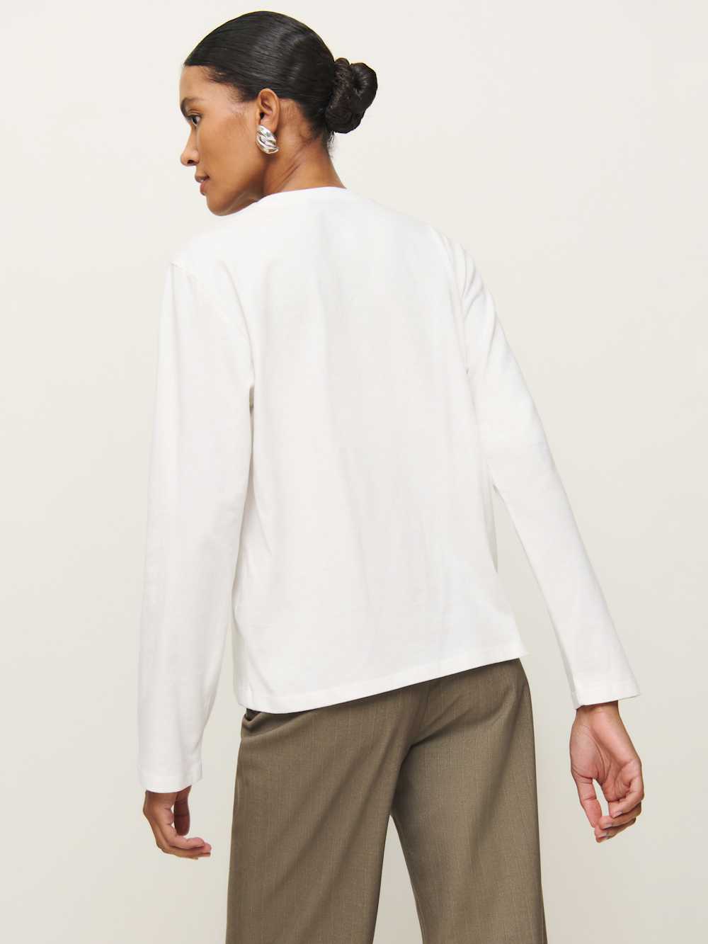 Shop the Asher Oversized Long Sleeve Tee from Reformation, a full-length sweatshirt with a relaxed fit and crew neckline.