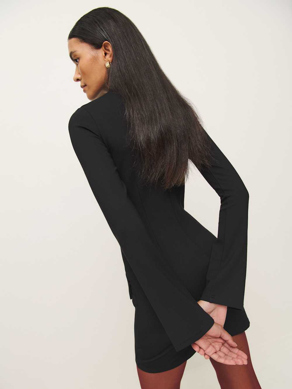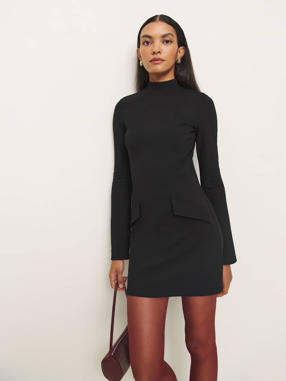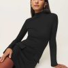 How classic. Shop the Atlas Knit Dress from Reformation, a long-sleeve mini dress with a mock neckline and front pockets.
