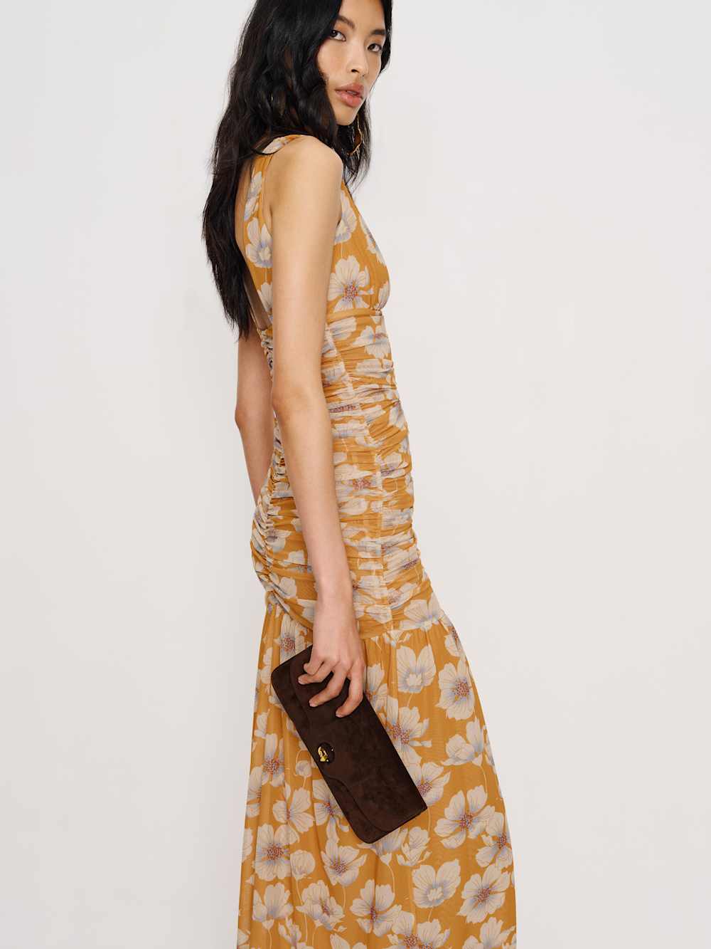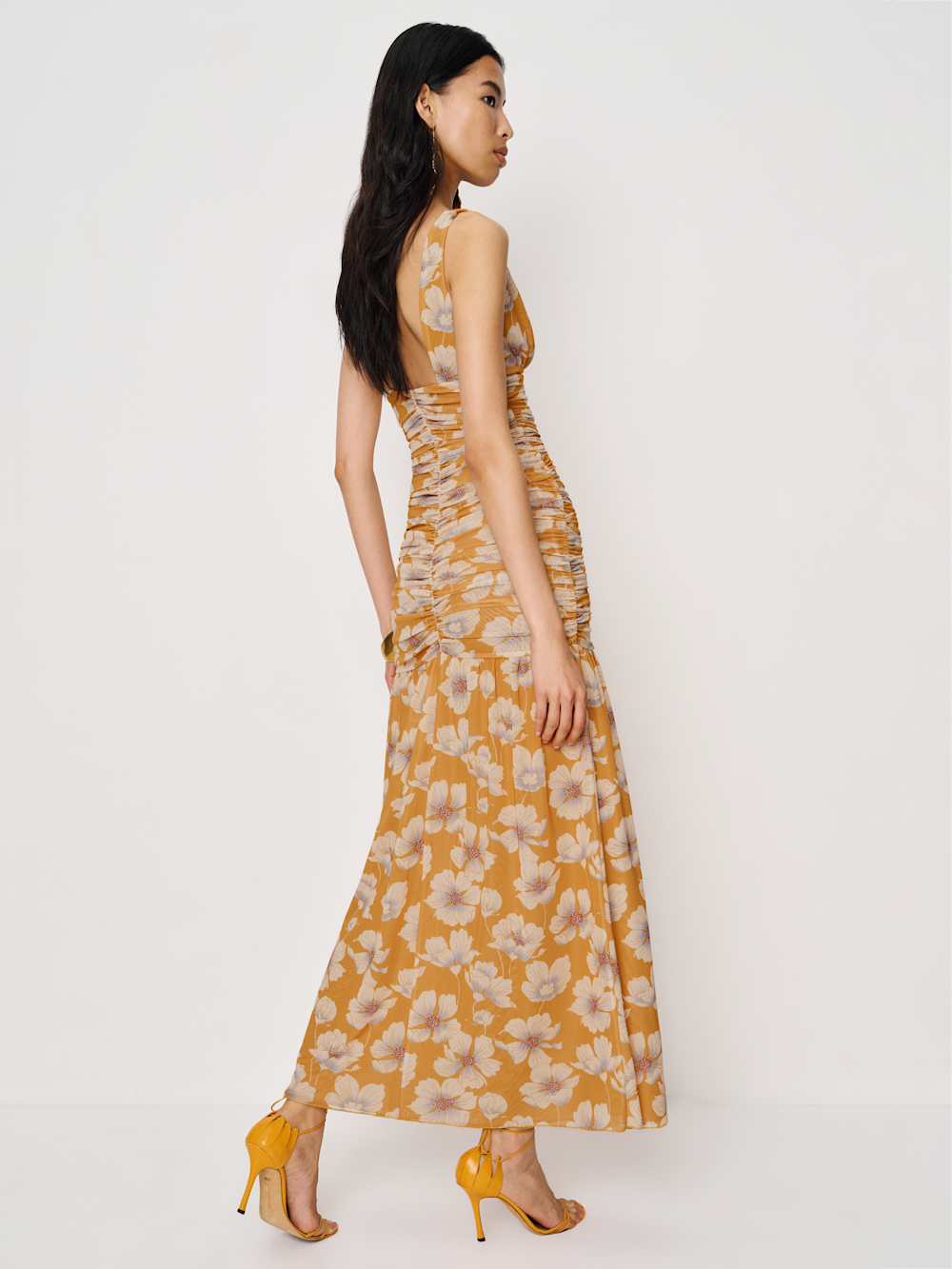 How classic. Shop the Aura Knit Dress from Reformation, a sleeveless maxi dress with a deep v-neckline and ruching throughout the bodice.