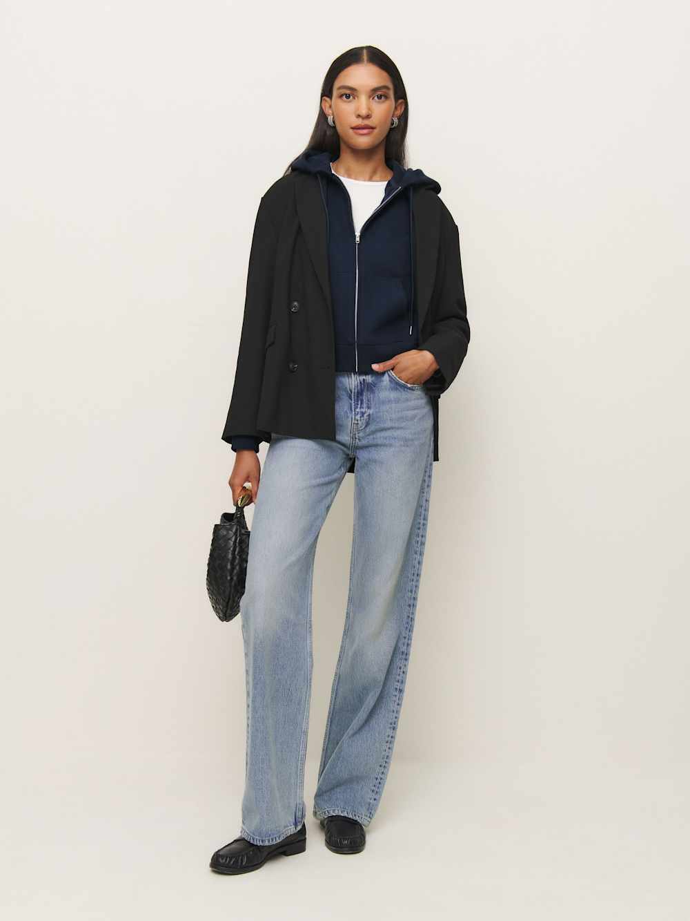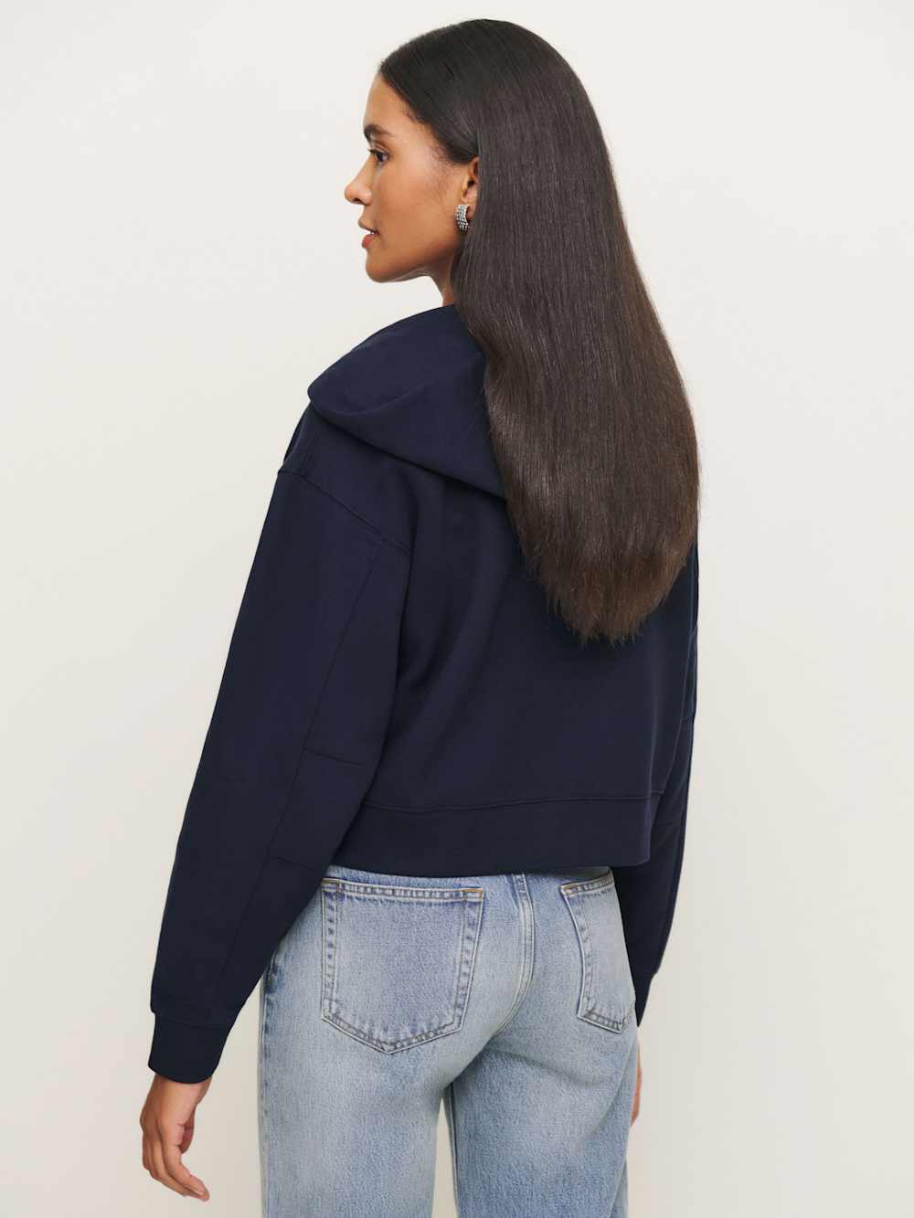 Shop the Austin Zip Up Hoodie from Reformation, a cropped sweatshirt with a zipper and hood.