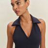 Who, me. Shop the Austine Knit Dress from Reformation, a sleeveless mini dress with a collared neckline and an open back.
