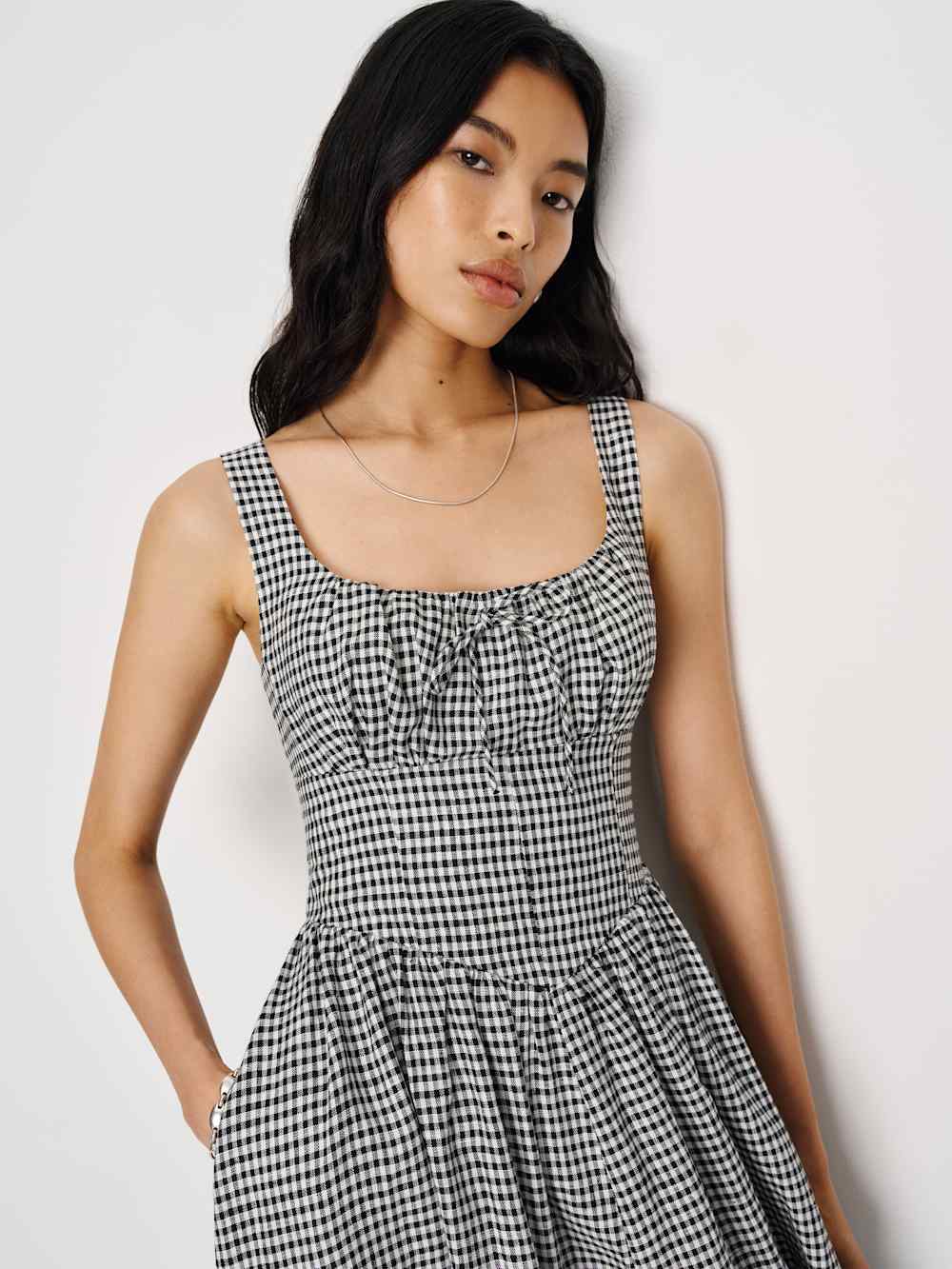 Easy breezy. Shop the Balia Linen Dress from Reformation, a sleeveless maxi dress with a drop waist, scoop neckline, and front tie.
