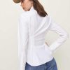 Buttoned up. Shop the Becker Shirt from Reformation, a long-sleeve top with a collared neckline, button front, and tailored waist.
