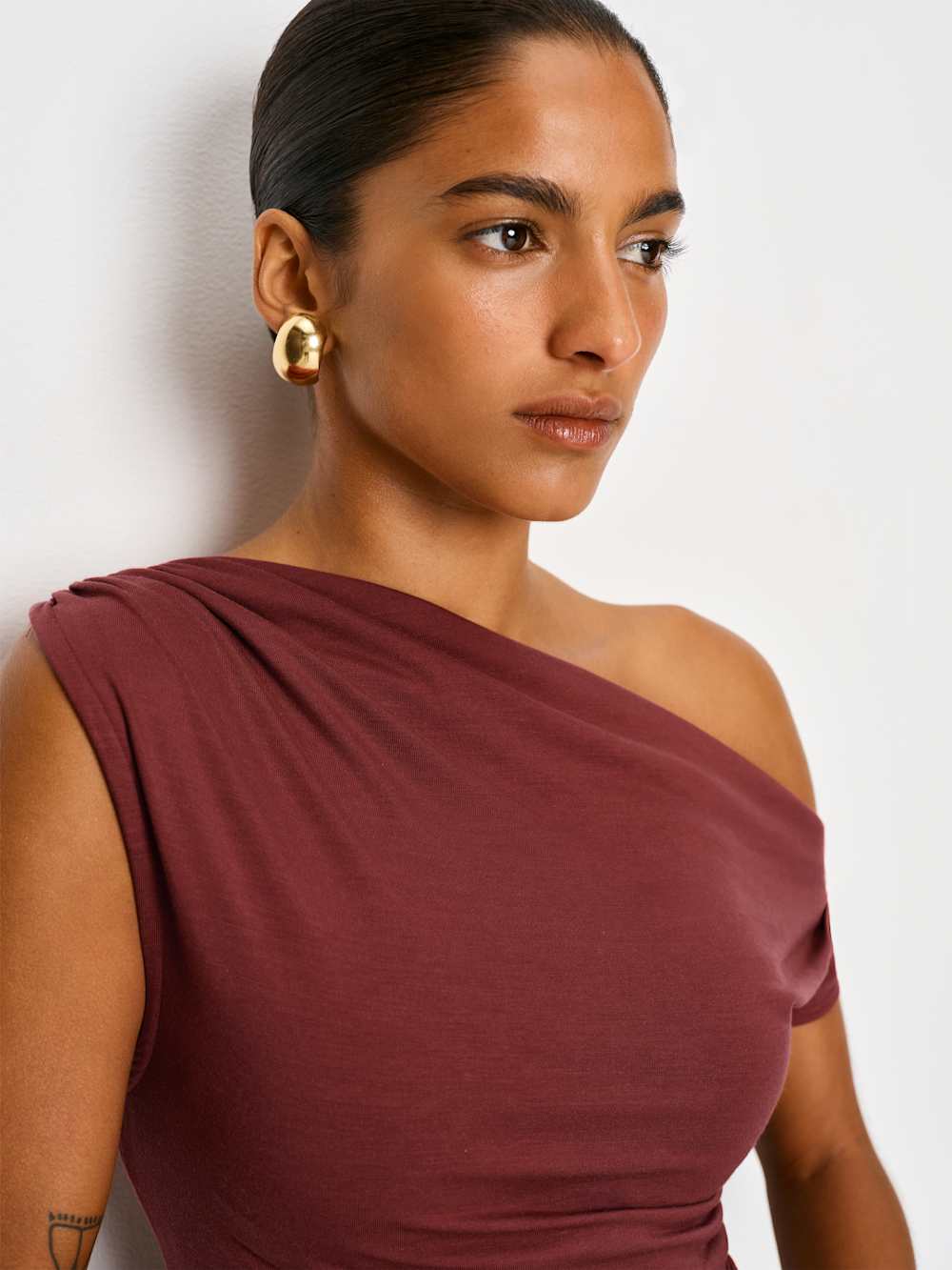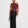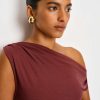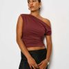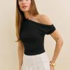 You flirt. Shop the Belle Knit Top from Reformation, an off-the-shoulder, asymmetrical top with ruching throughout.