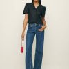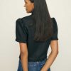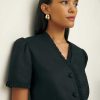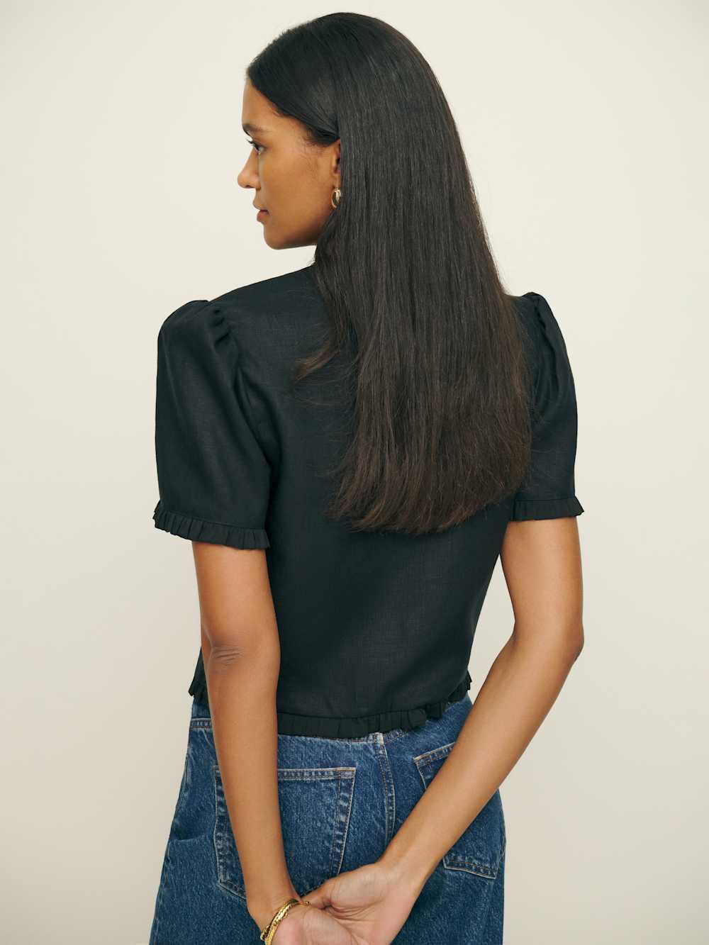 It’s called liking nature. Shop the Bess Linen Top from Reformation, a puff short sleeve, button down top with a ruffled hem.