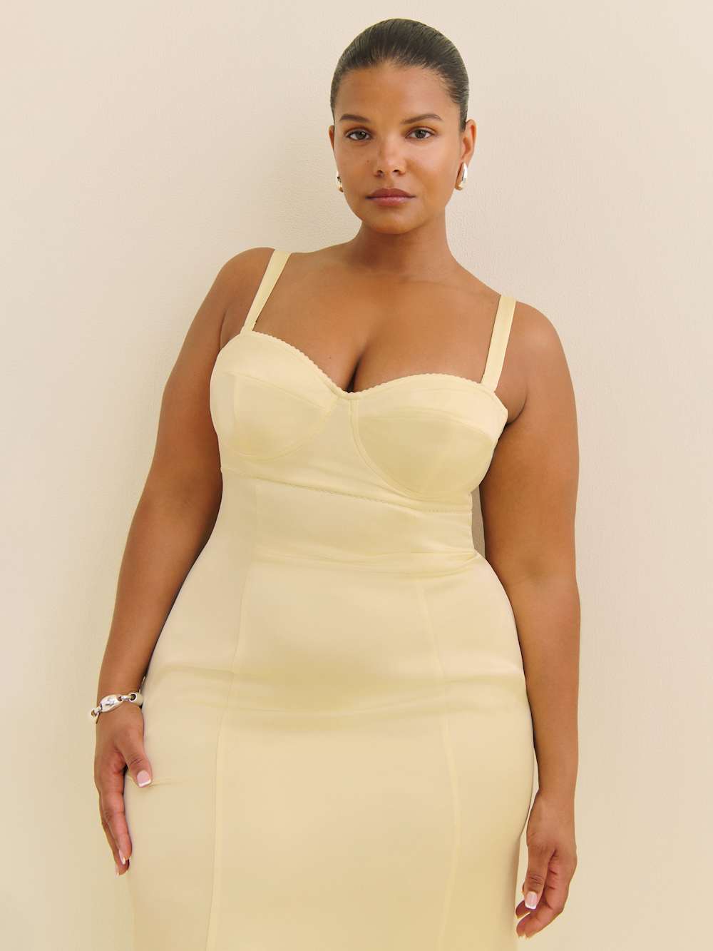 Save the earth one dress at a time. Shop the Britney Satin Dress Es, a sustainable long dress from Reformation.