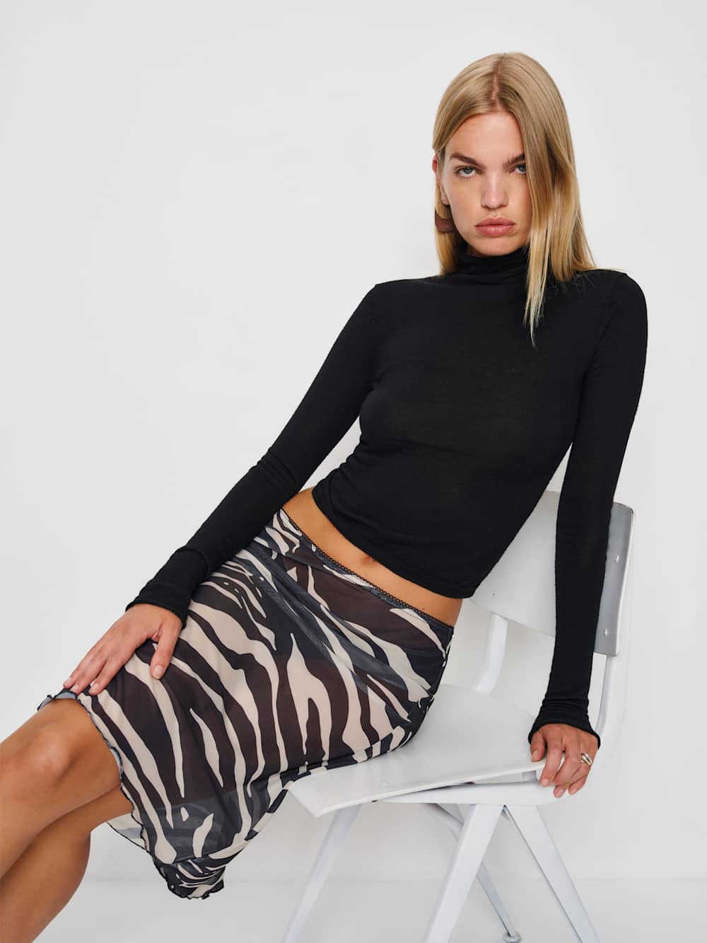 Wear the skirt. Shop the Brodie Sheer Knit Skirt, a sustainable skirt from Reformation.