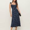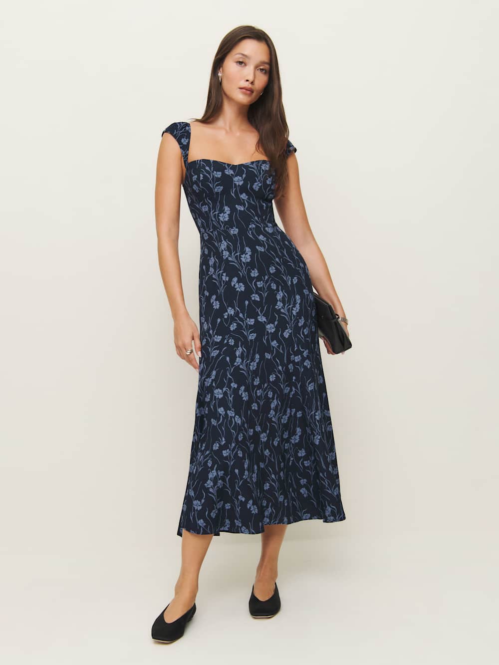 Wear the dress. Shop the Bryson Dress from Reformation, a midi dress with short, cap sleeves, a sweetheart neckline and an A-line silhouette.