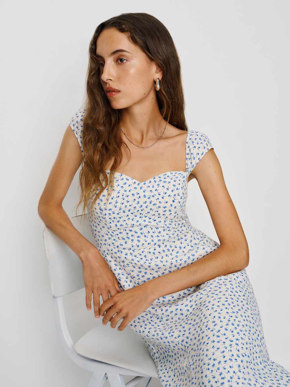 Wear the dress. Shop the Bryson Dress from Reformation, a midi dress with short, cap sleeves, a sweetheart neckline and an A-line silhouette.