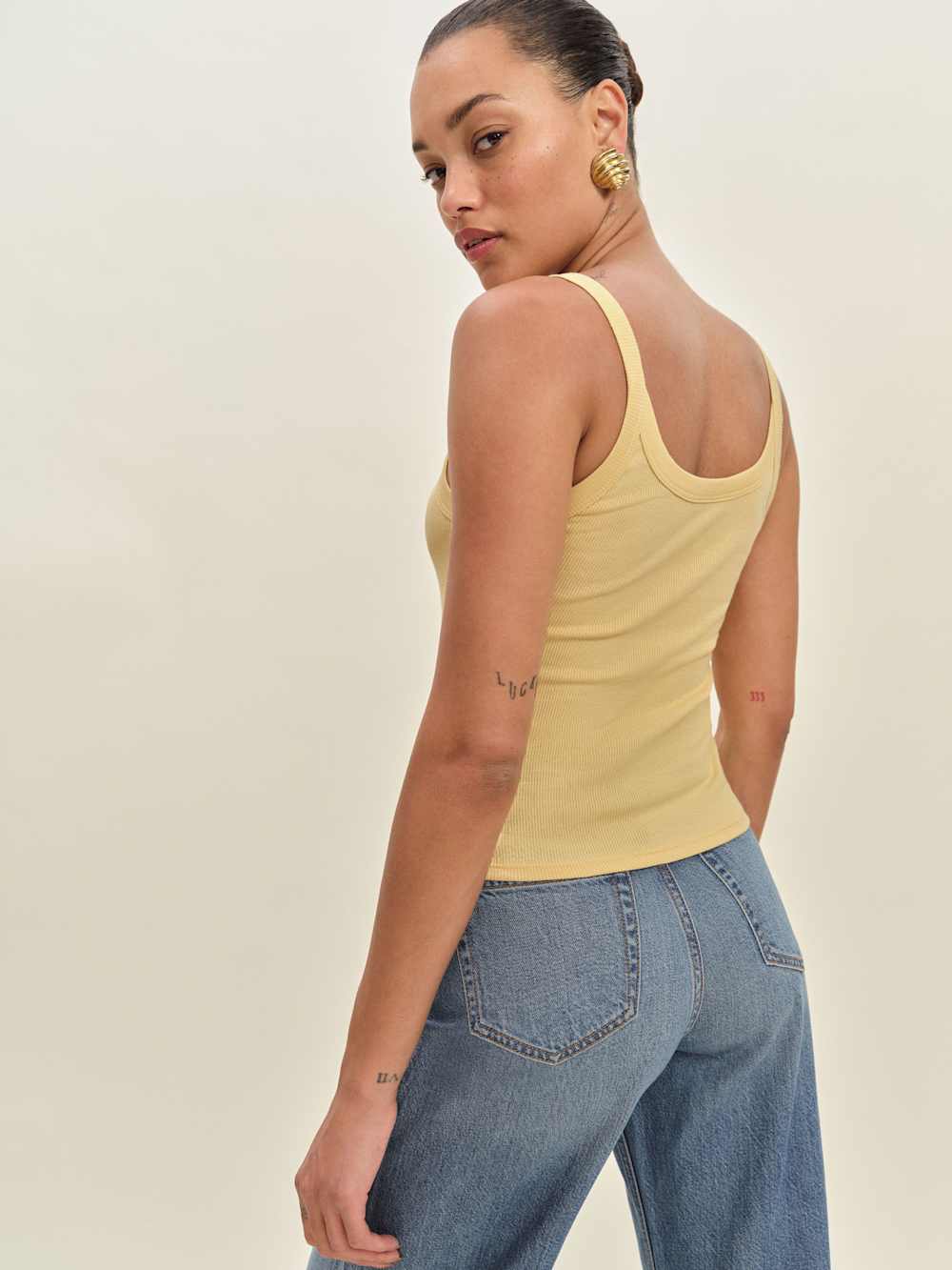 You make it look easy. Shop the Calie Top from Reformation, a fitted tank top with a scoop neckline. It’s soft and stretchy for an extra comfortable feel.