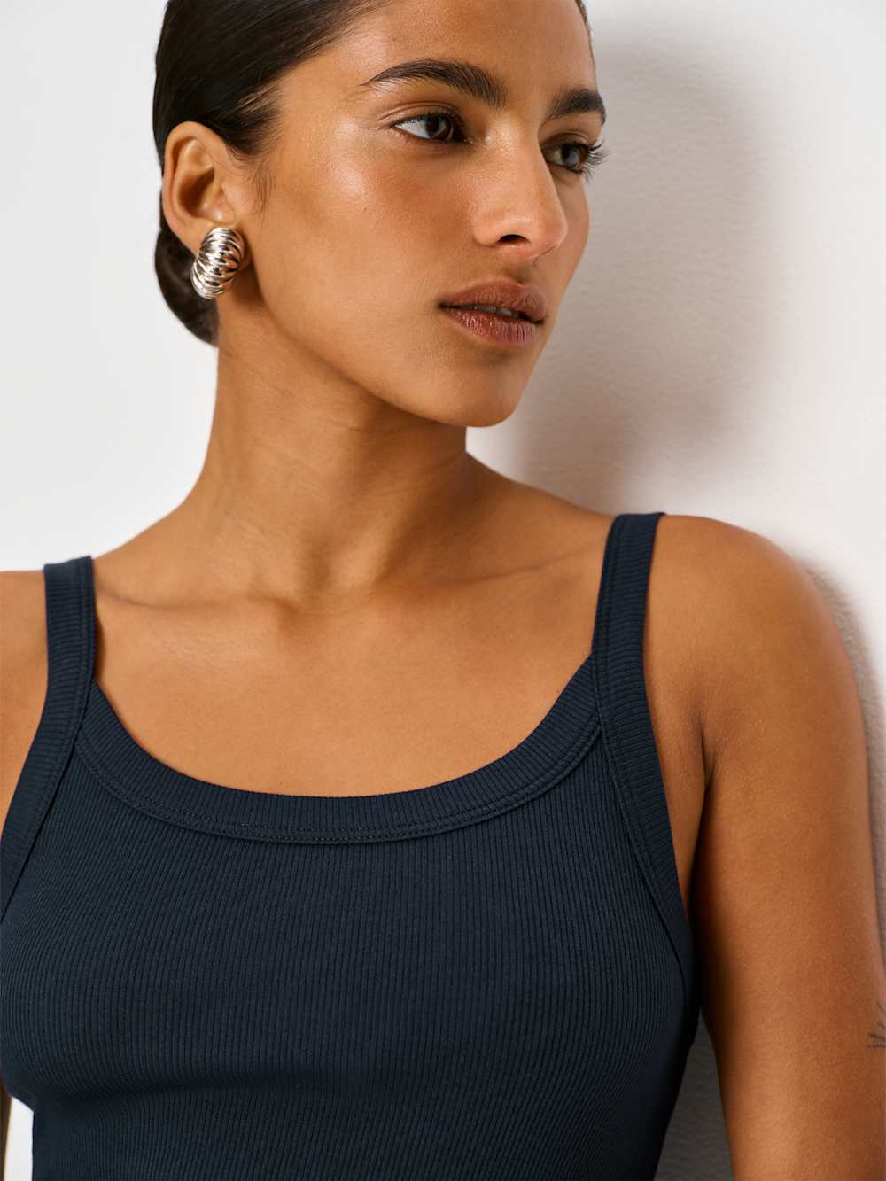 You make it look easy. Shop the Calie Top from Reformation, a fitted tank top with a scoop neckline. It’s soft and stretchy for an extra comfortable feel.
