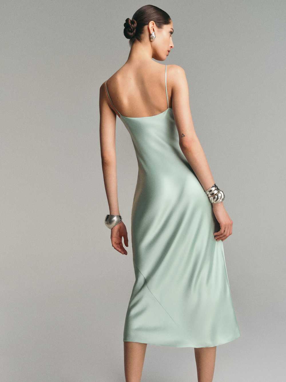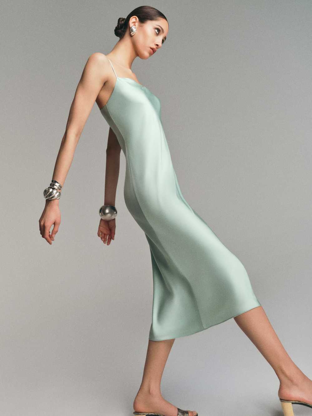 How classic. Shop the Cardi Silk Dress from Reformation, a sleeveless midi dress with a square neckline.