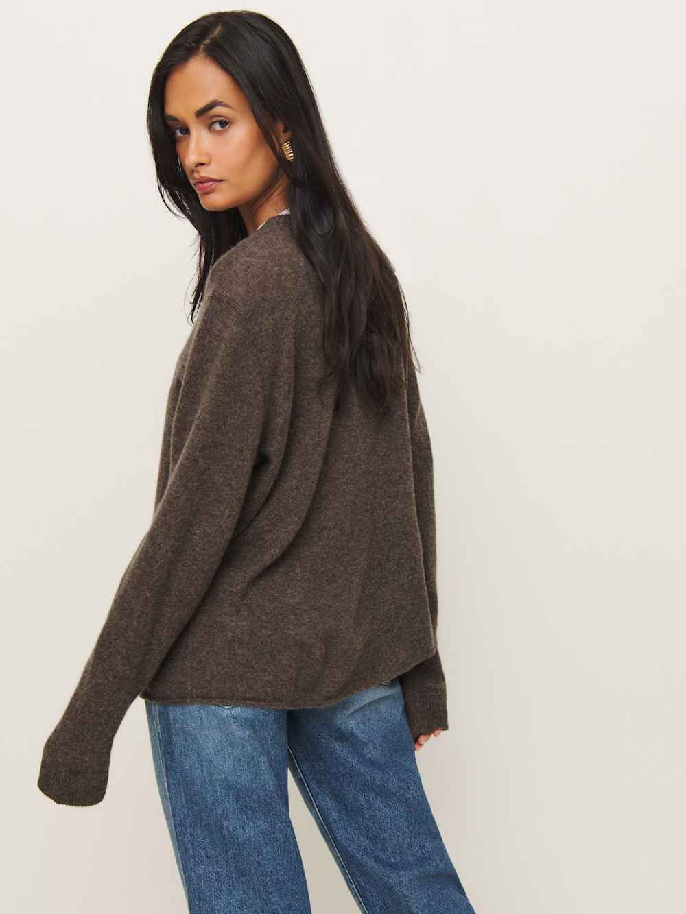This is a fine-gauge recycled cashmere blend sweater knit – 95% Recycled Cashmere, 5% Cashmere. Hand wash + dry flat.