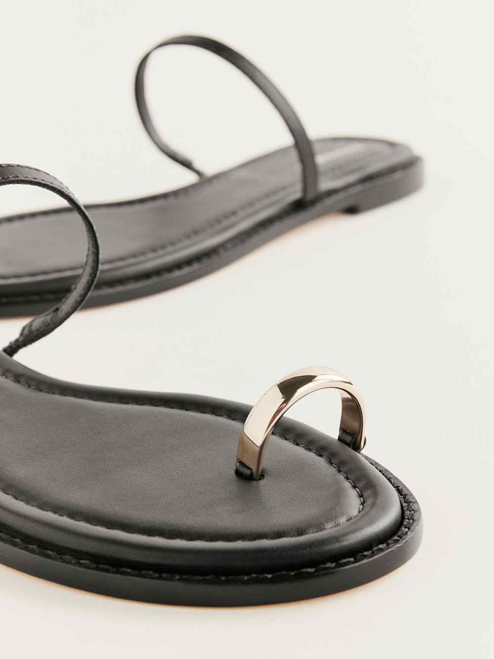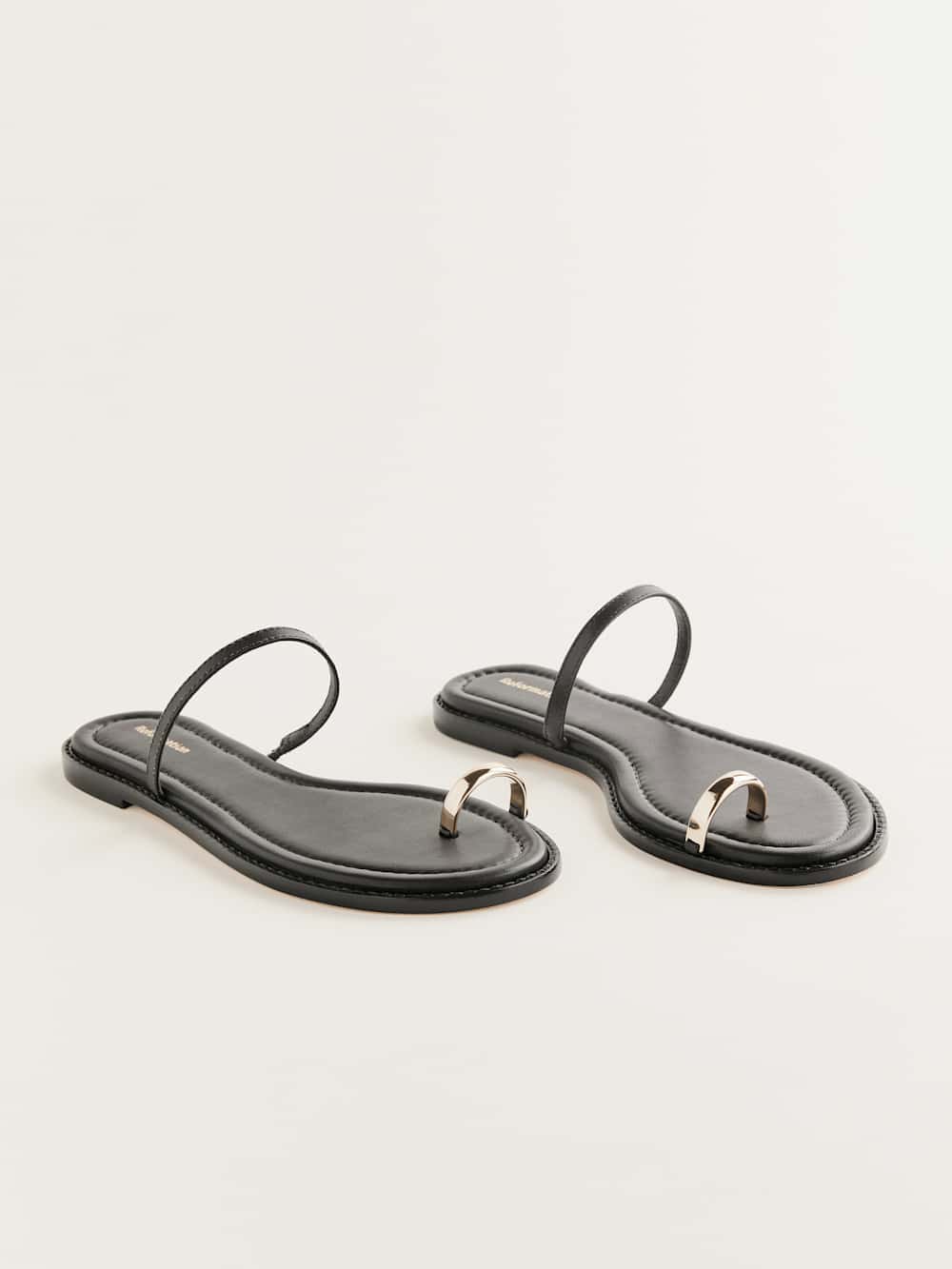 Throw on and go. Shop the Cassandra Flat Sandal from Reformation, a flat sandal with toe ring detailing.