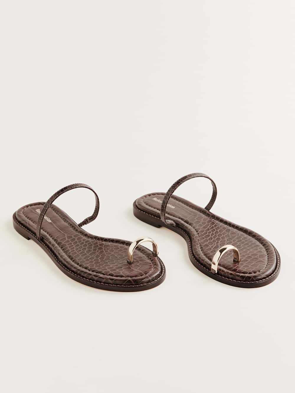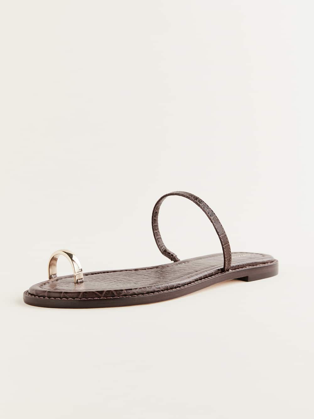 Throw on and go. Shop the Cassandra Flat Sandal from Reformation, a flat sandal with toe ring detailing.