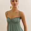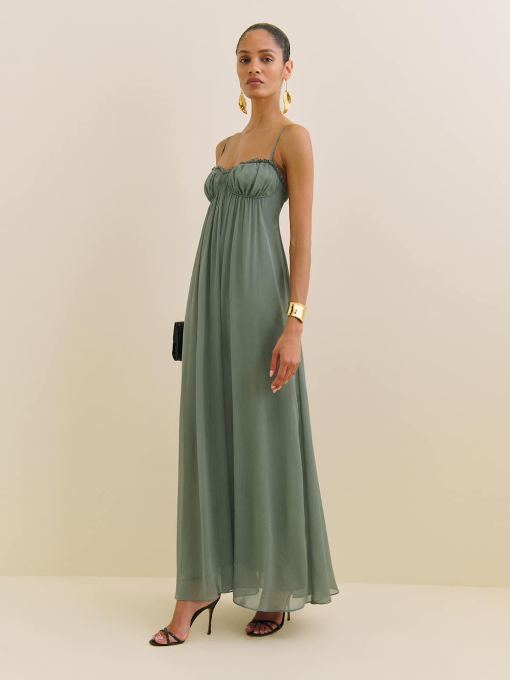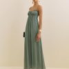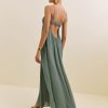 Wear the dress. Shop the Cebba Dress from Reformation, a sleeveless maxi dress with a sweetheart neckline, cutout at the back, ruching throughout.