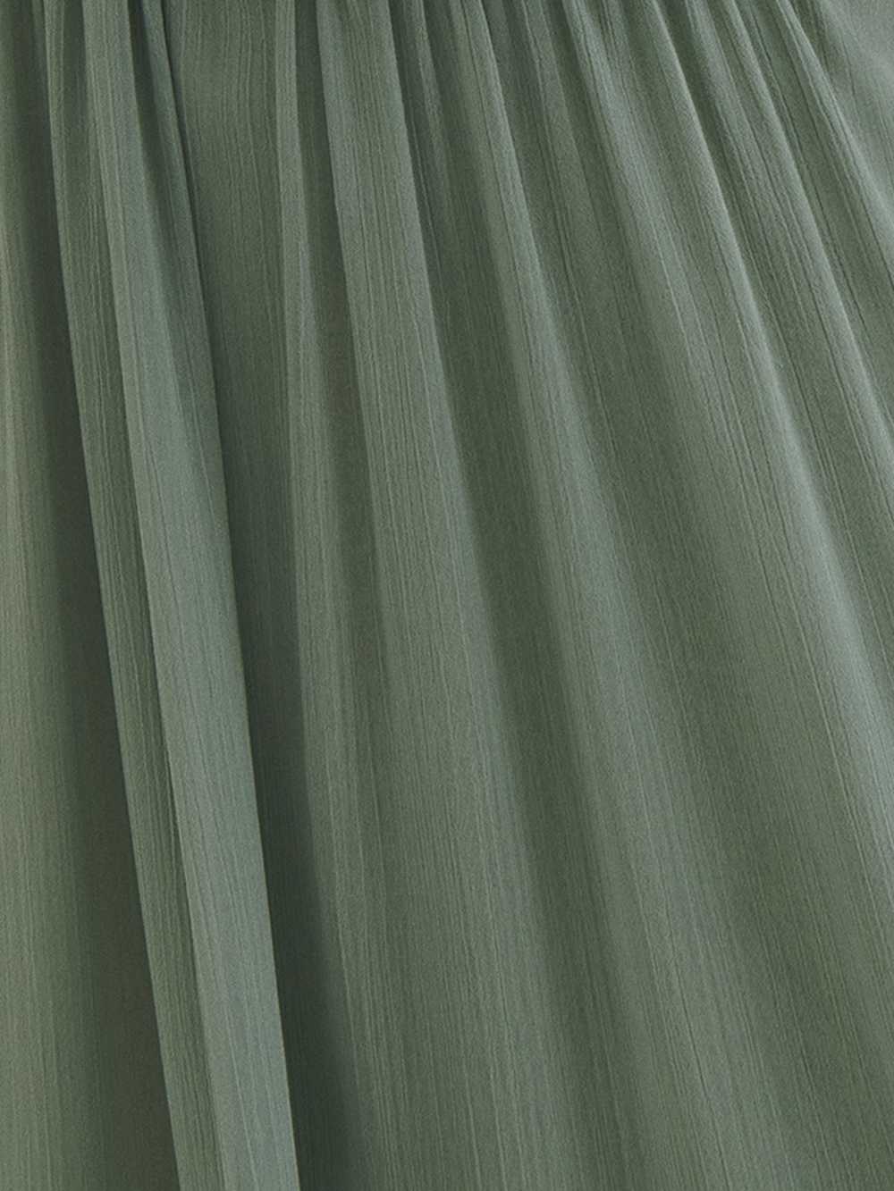 The model is wearing a size 0 and is 5’10", 23" waist, 35.5" hips, 32.5" bust.