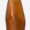Upper is made from vachetta which is a firmer leather that will soften with wear and ages beautifully. Spot clean.