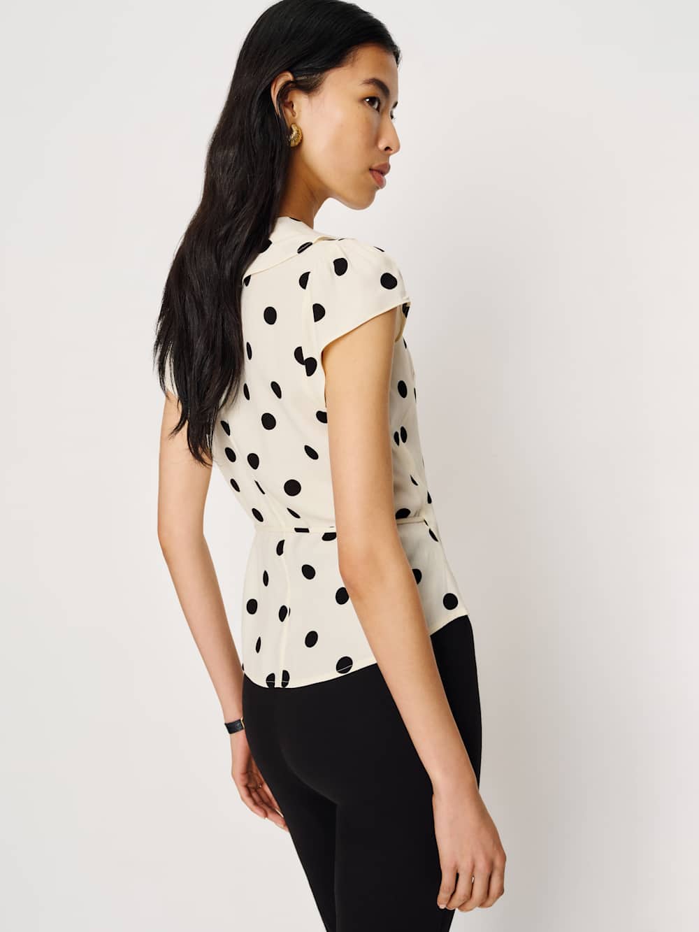 What do we have here? Shop the Clemence Top from Reformation, a short-sleeved adjustable wrap top with ruffle detailing.