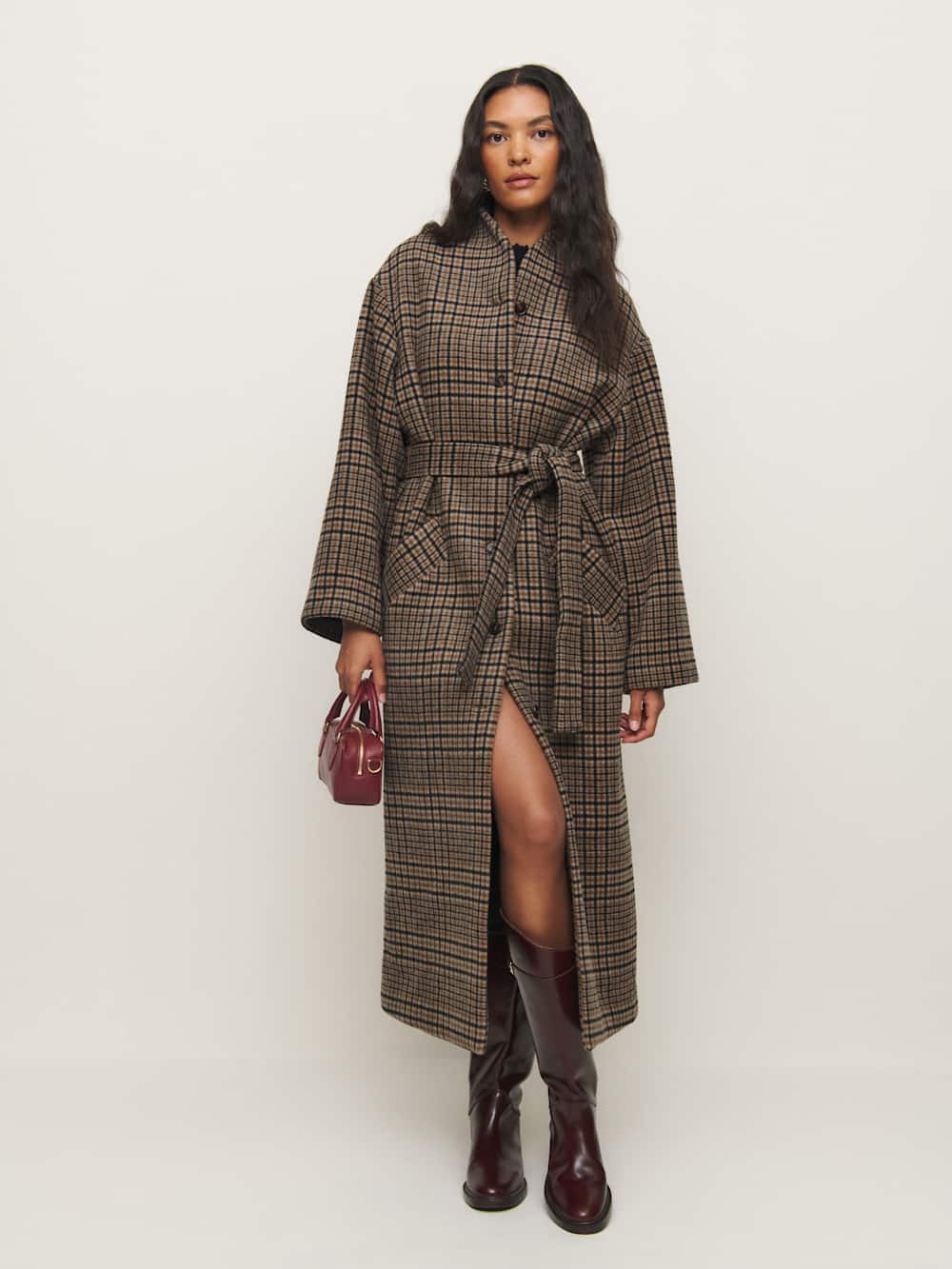 Shop the Cotswolds Coat from Reformation, a full-length woven coat with pockets.