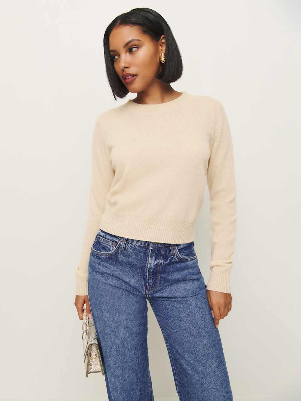 How classic. Shop the Dana Cashmere Crew Sweater from Reformation, a fitted long sleeve sweater with a crew neckline.