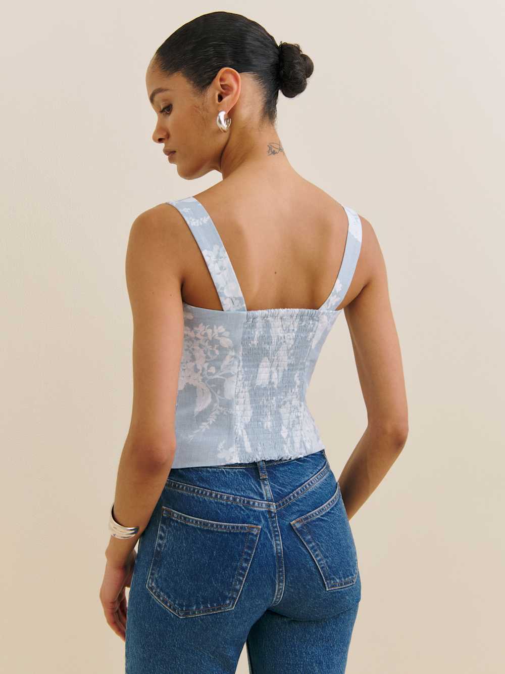Up top. Shop the Darci Linen Top from Reformation, a sleeveless linen top with a square neckline.