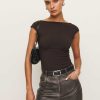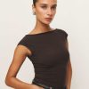 Soft and stretchy if you’re into that. Shop the Darra Knit Top from Reformation, a fitted top with a high boat neckline, cap sleeves, and an open back.
