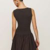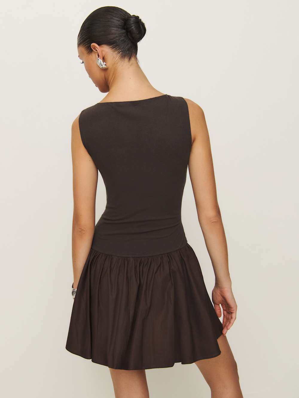 Romance alert. Shop the Defina Knit Dress from Reformation, a mini length dress with a boat neckline, drop waist, and pleated skirt.
