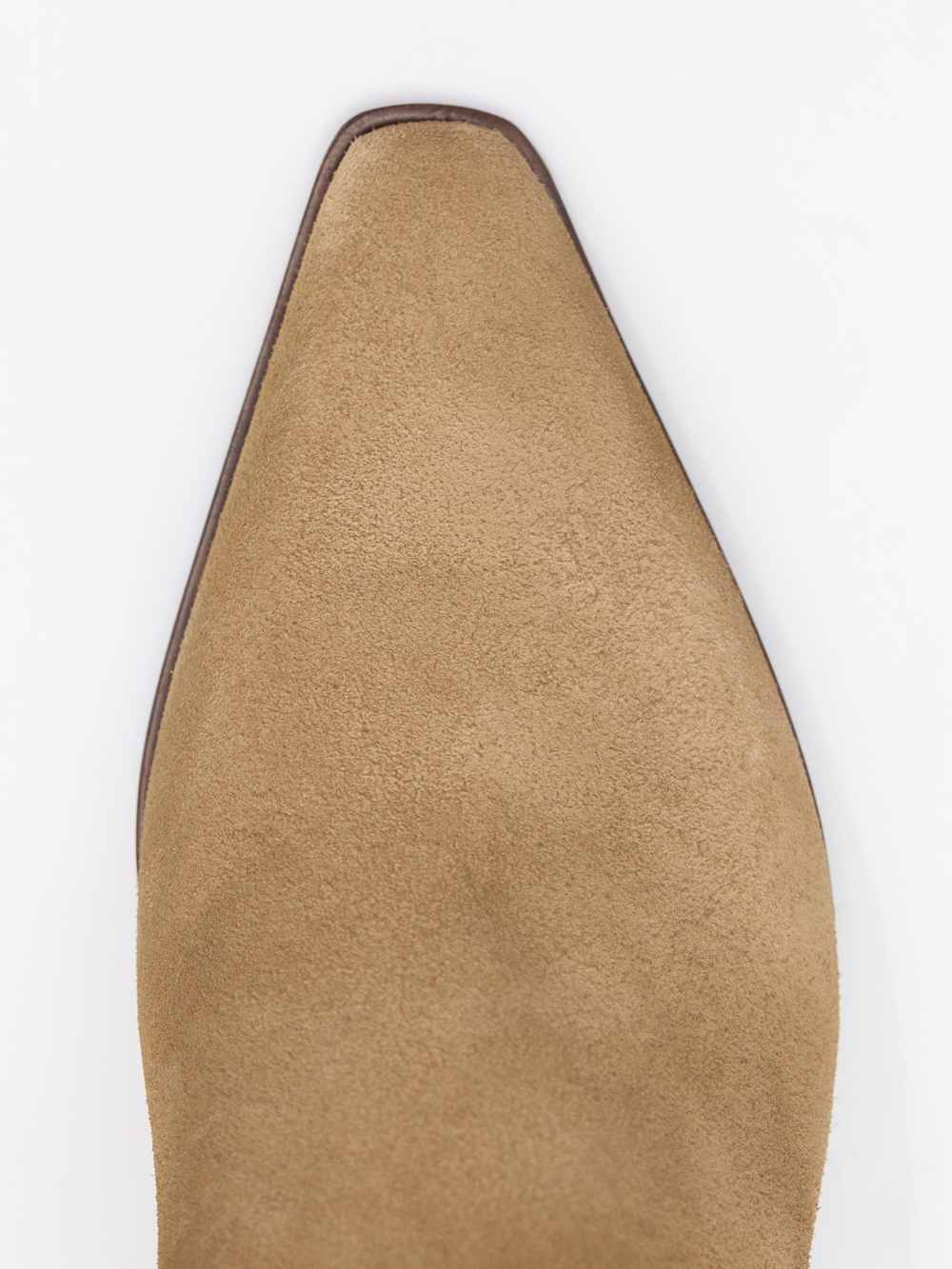 Calf suede leather with a luxurious short nap and soft hand. Spot clean.