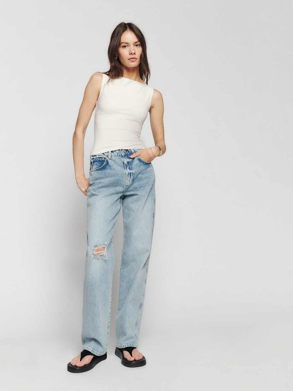 Bye sleeves. Shop the Dusk Knit Top from Reformation, a sleeveless, fitted top with a boat neckline.
