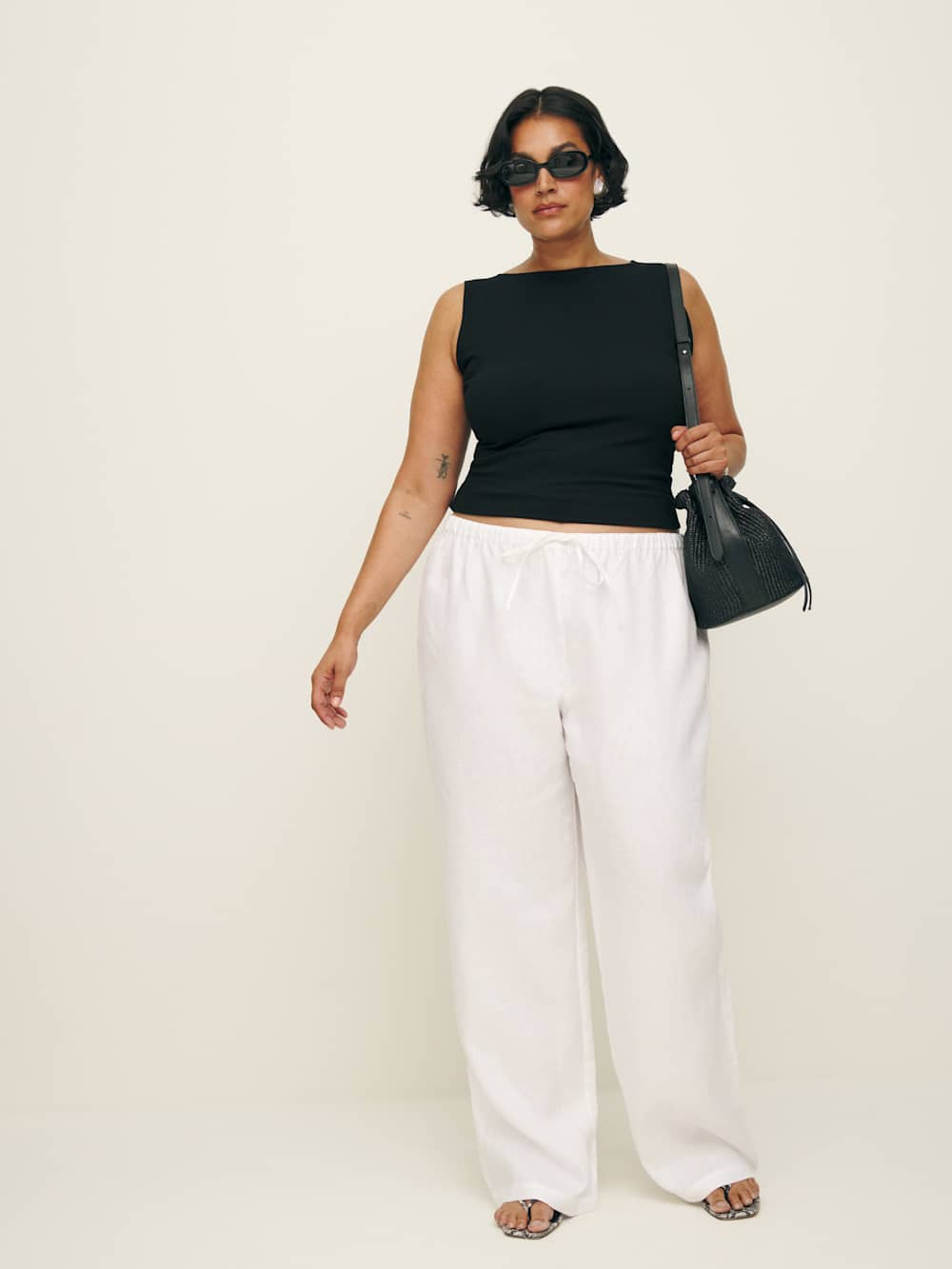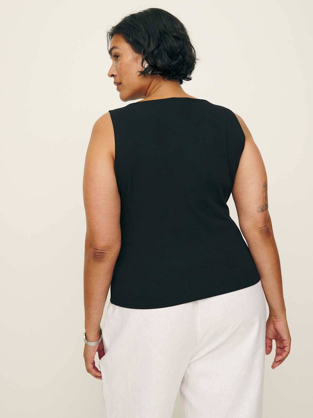Bye sleeves. Shop the Dusk Knit Top ES from Reformation, a sleeveless, fitted top with a boat neckline.