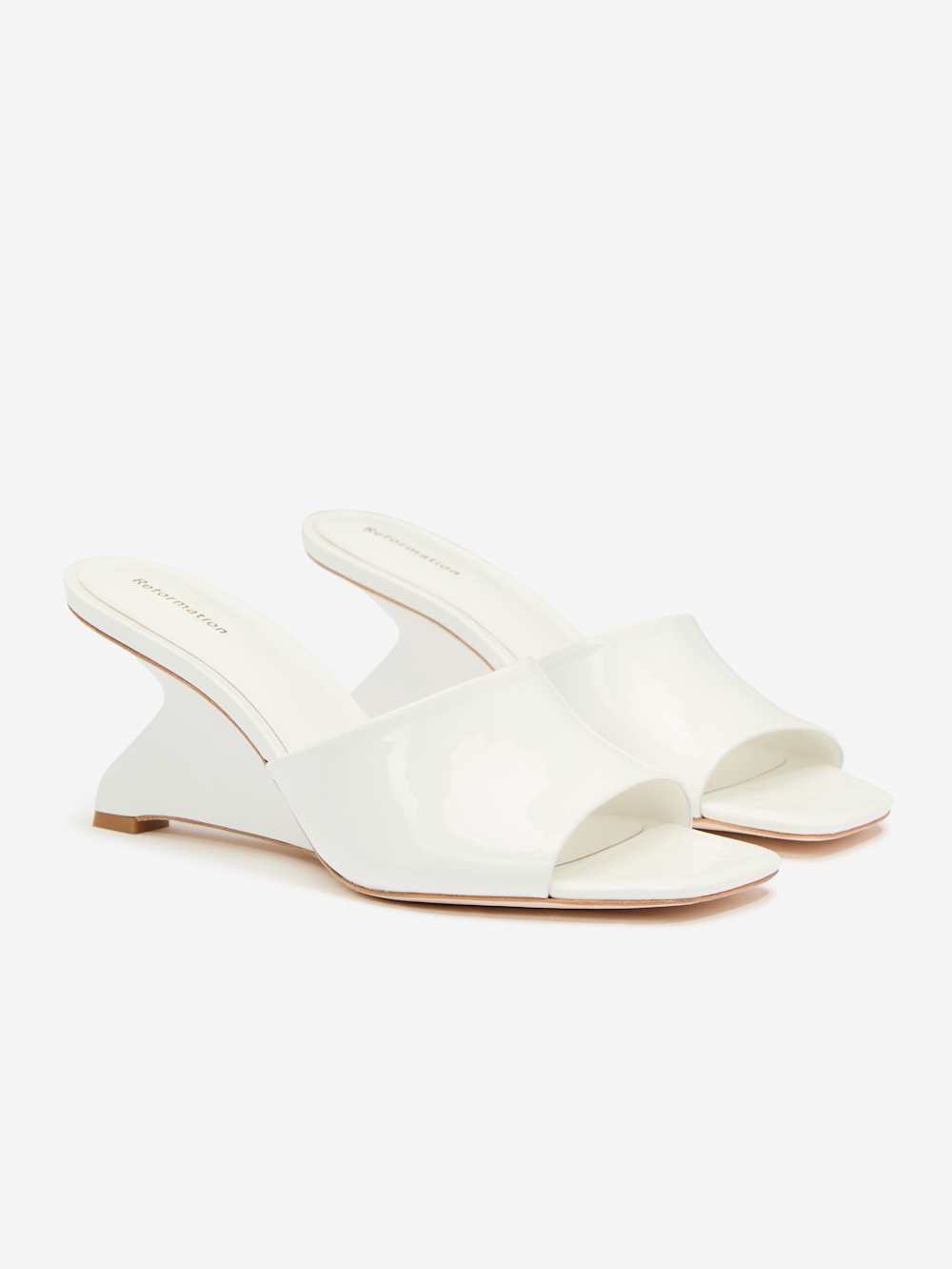 Show some toe. Shop the Enya Wedge Sandal from Reformation, a square toe wedge sandal with a fresh update.