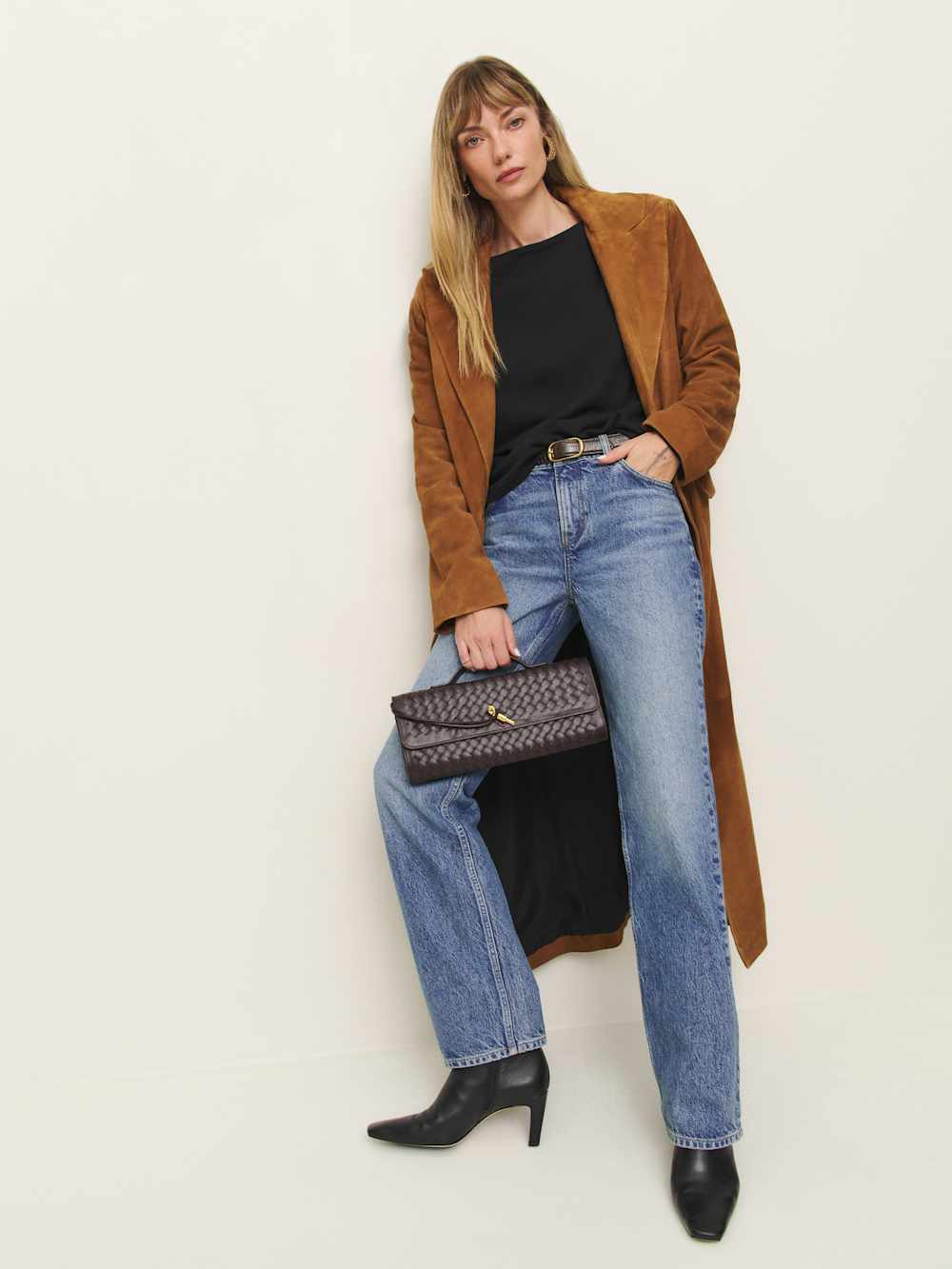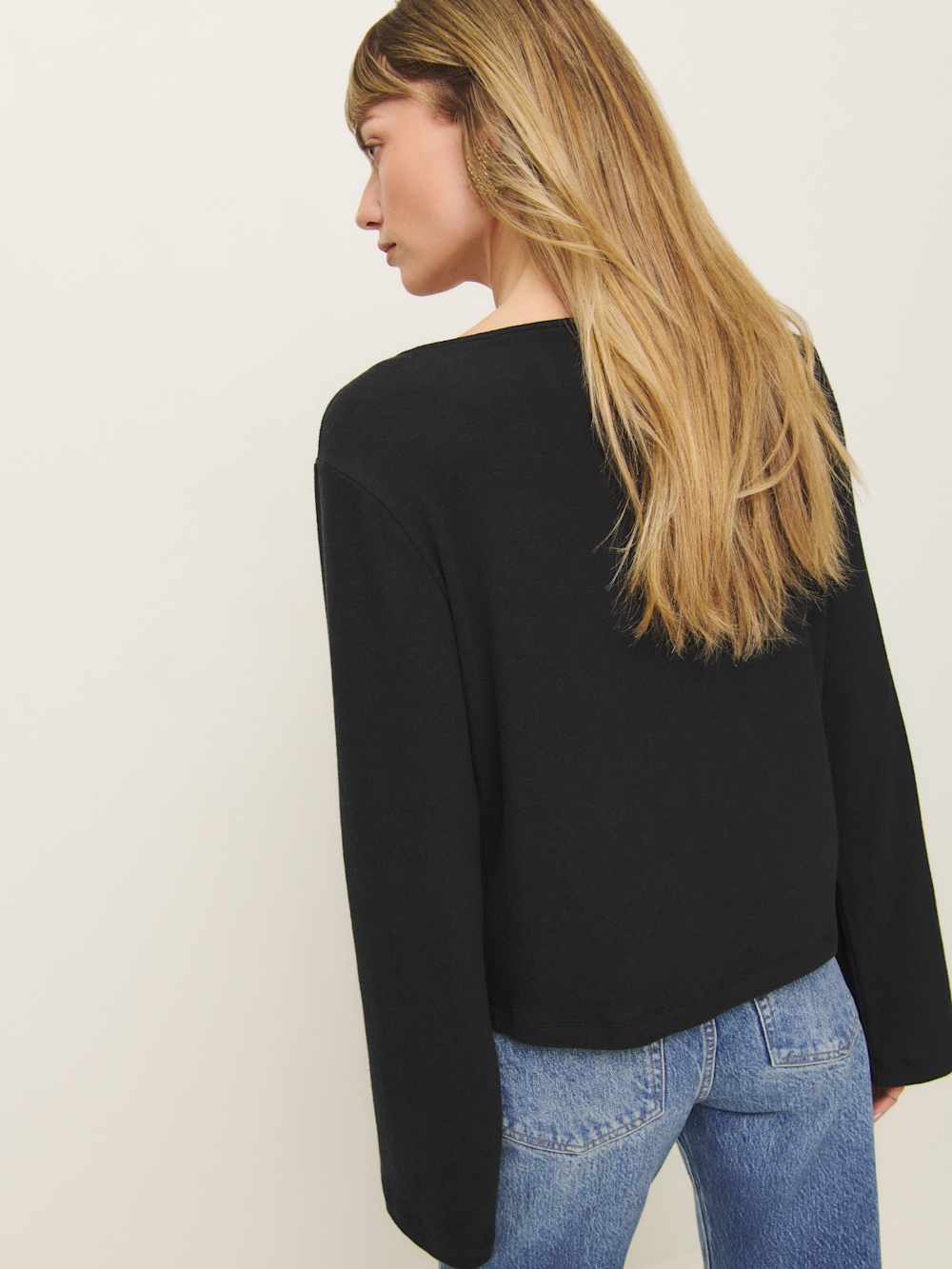 Just add pants. Shop the Eternity Knit Top from Reformation, a long sleeve top with a relaxed fit, slight boat neckline, and flared sleeves.