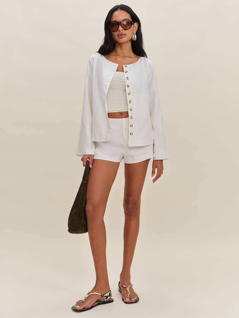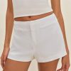 Let those legs out. Shop the Everett Short from Reformation, a mid-rise short with seam detailing, a zip closure, and adjustable buttons at the waist.