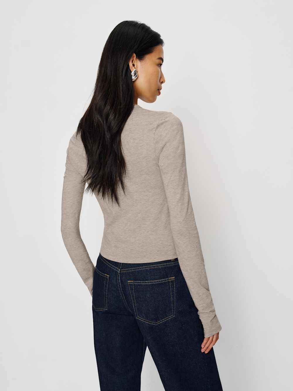 Shop the Ezra Slim Fit Long Sleeve from Reformation, a fitted long-sleeve tee with a crew neckline.