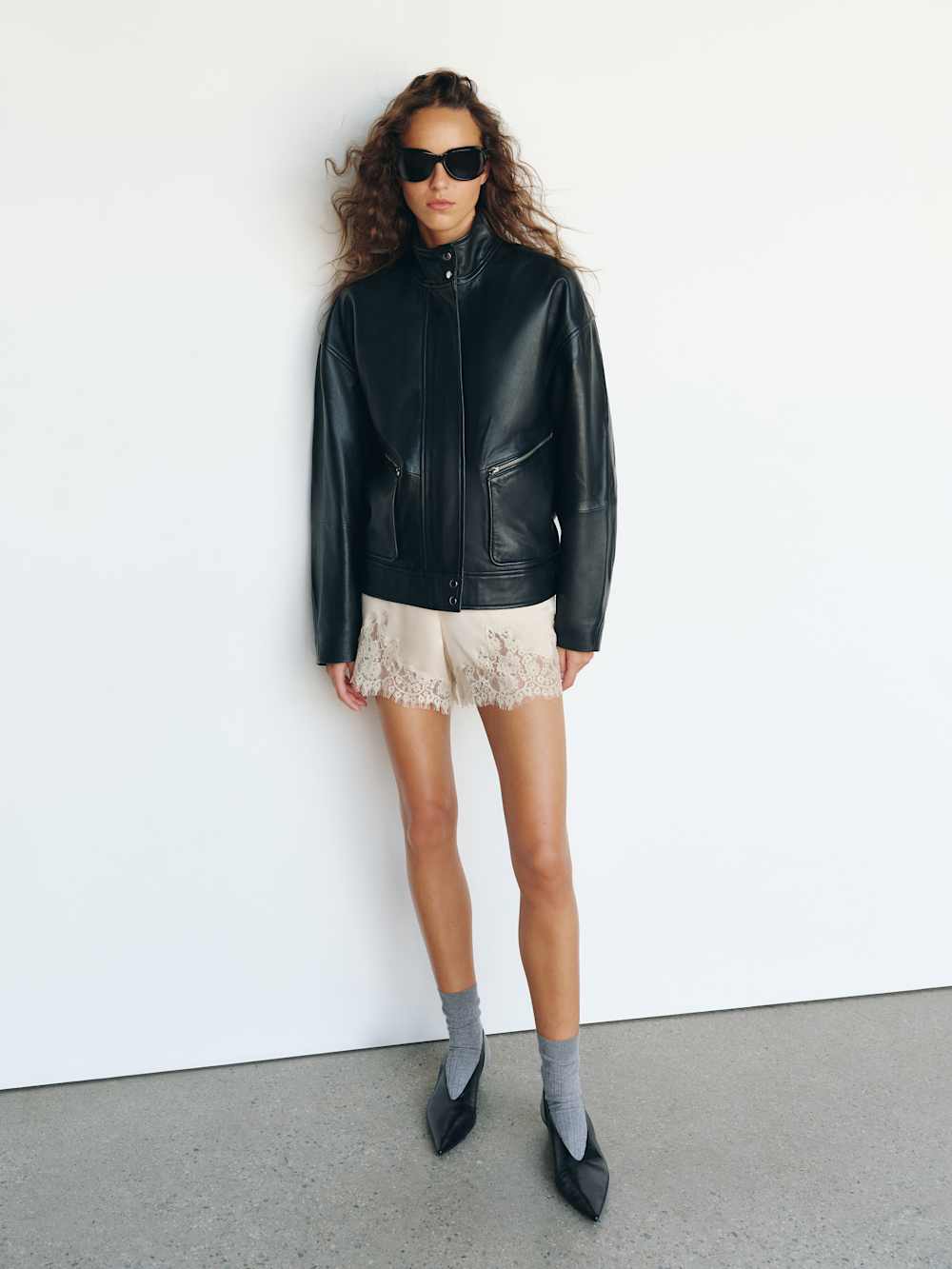 May cause compliments. Shop the Fern Satin Short from Reformation, a mid-rise short with a relaxed fit and a lace hem.