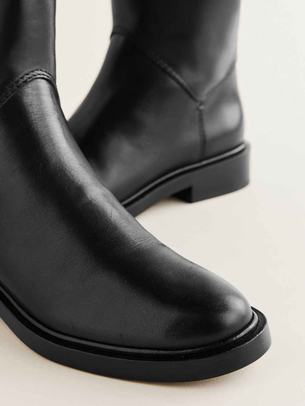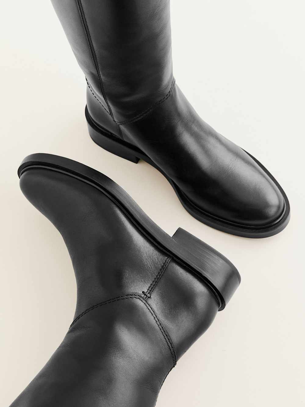 Shop the Franklin Knee Boot from Reformation, a knee-high leather boot with a flat heel and almond toe shape.