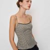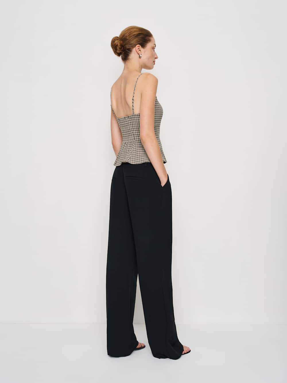 Up top. Shop the Genevieve Top from Reformation, a sleeveless top with a curved neckline, lace trim at the bust, and a peplum hem.