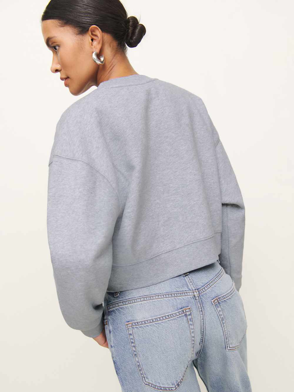 Shop the Grace Cropped Vintage Oversized Crewneck Sweatshirt from Reformation, a cropped, oversized sweatshirt with a crew neckline.