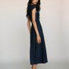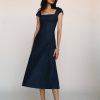 What do we have here? Shop the Harlie Dress from Reformation, a short-sleeved midi dress with a square neckline and cap sleeves.