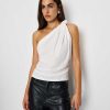 Up top. Shop the Harvey Knit Top from Reformation, a sleeveless asymmetrical neckline with a knot detail at the shoulder and ruched detailing.