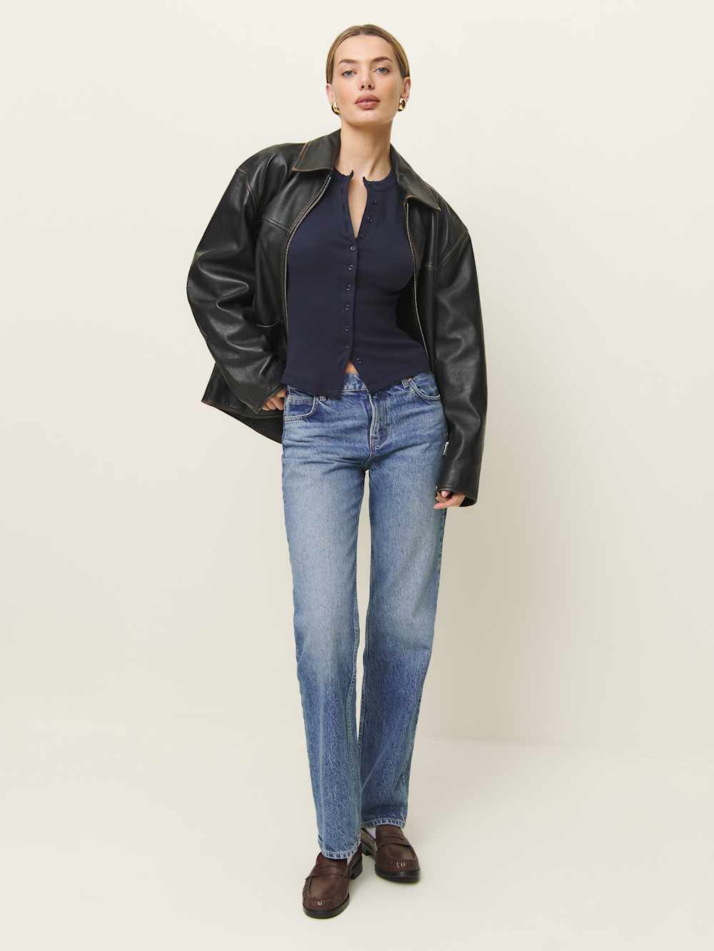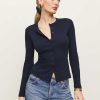 Up top. Shop the Hugh Knit Top from Reformation, a henley-style long-sleeved top with a button front.