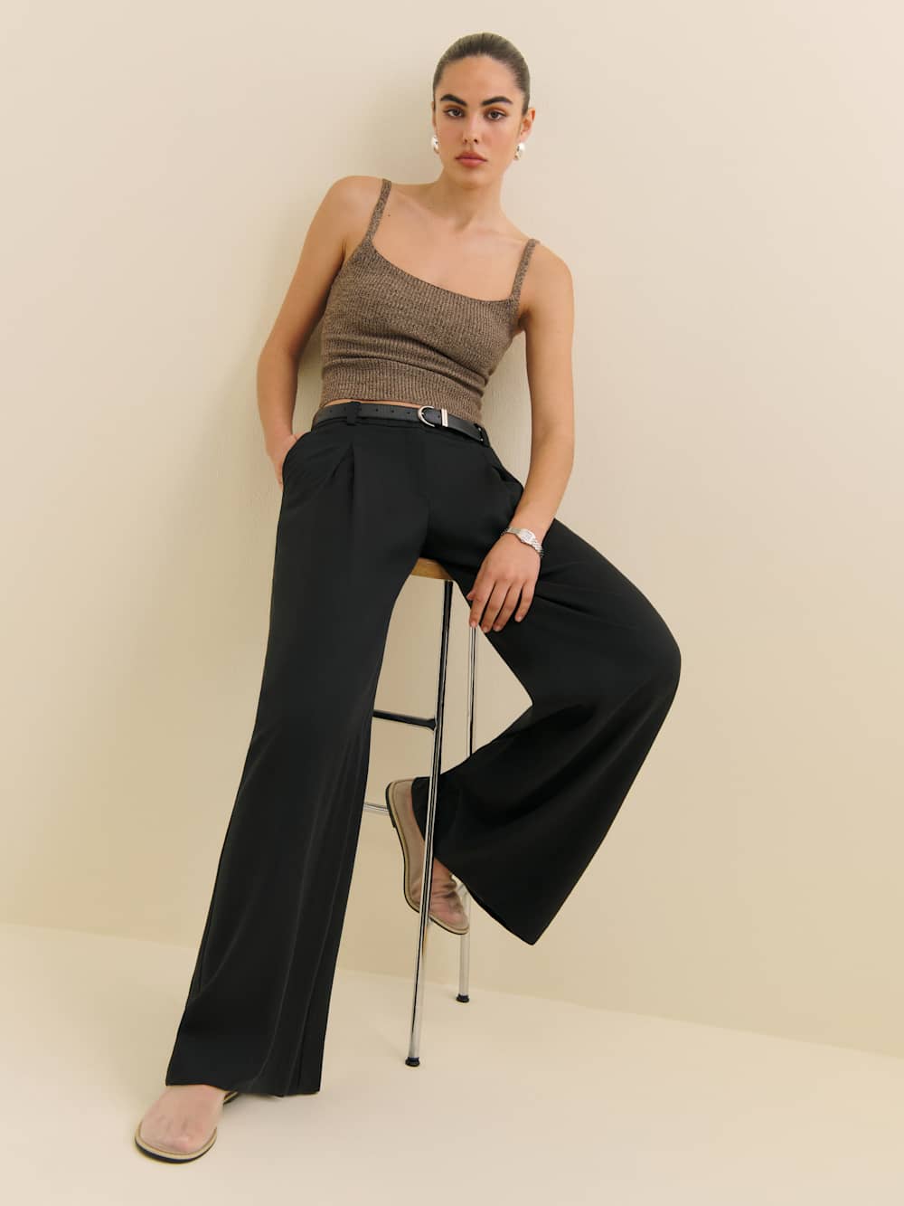 Wear the pants. Shop the Hugo Low Rise Pant from Reformation, a low-rise trouser pant with pleating at the front and side pockets.