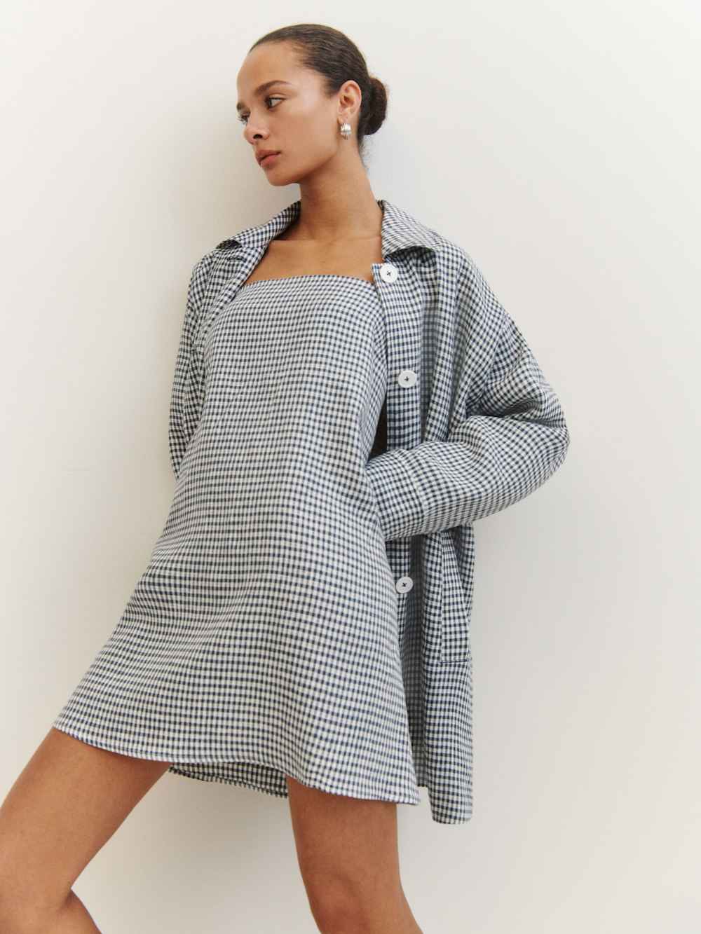 Layer up. Shop the Irene Linen Jacket from Reformation, a linen jacket with a collared neckline and button front.