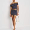 The model is wearing a size 0 and is 5’10", 23" waist, 34" hips, 32" bust.
