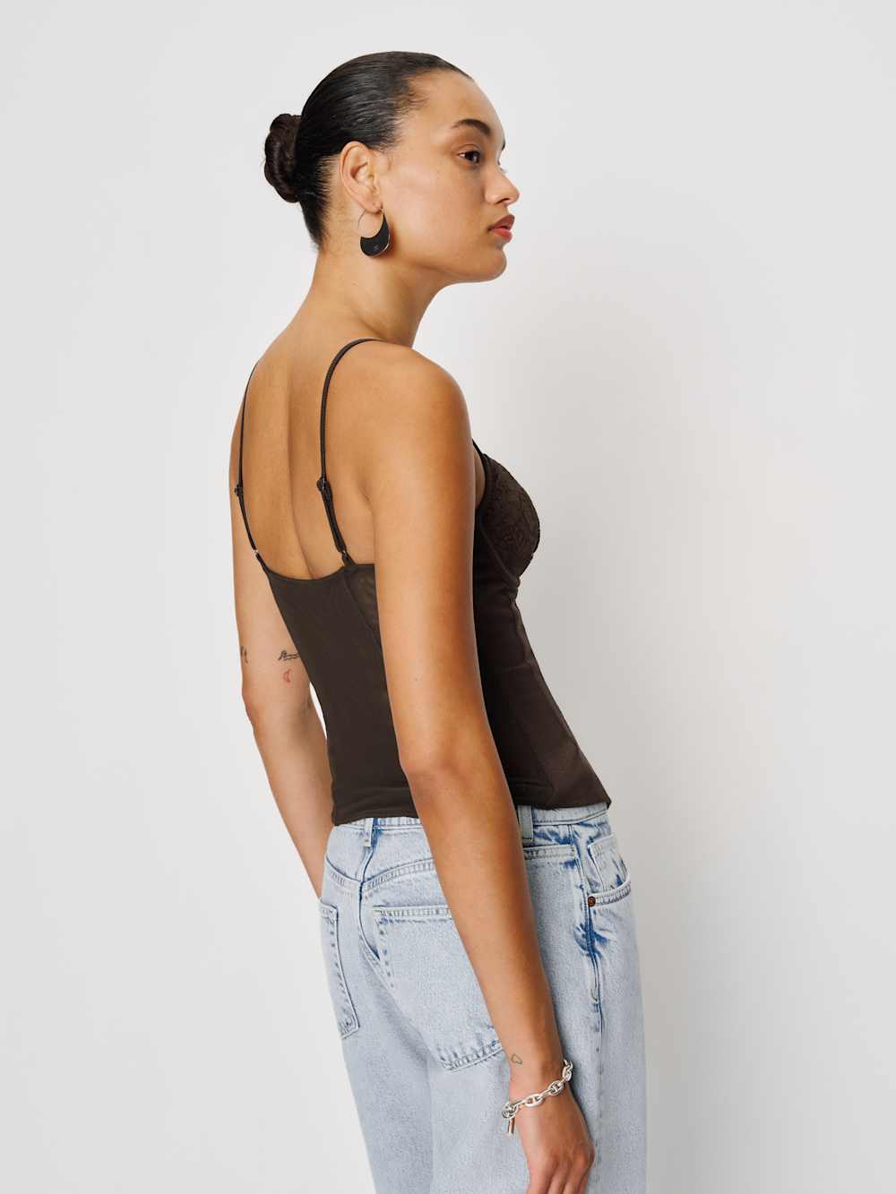 Romance alert. Shop the Italiana Top from Reformation, a sleeveless top with a sweetheart neckline and functional hook and eye closure down the front.