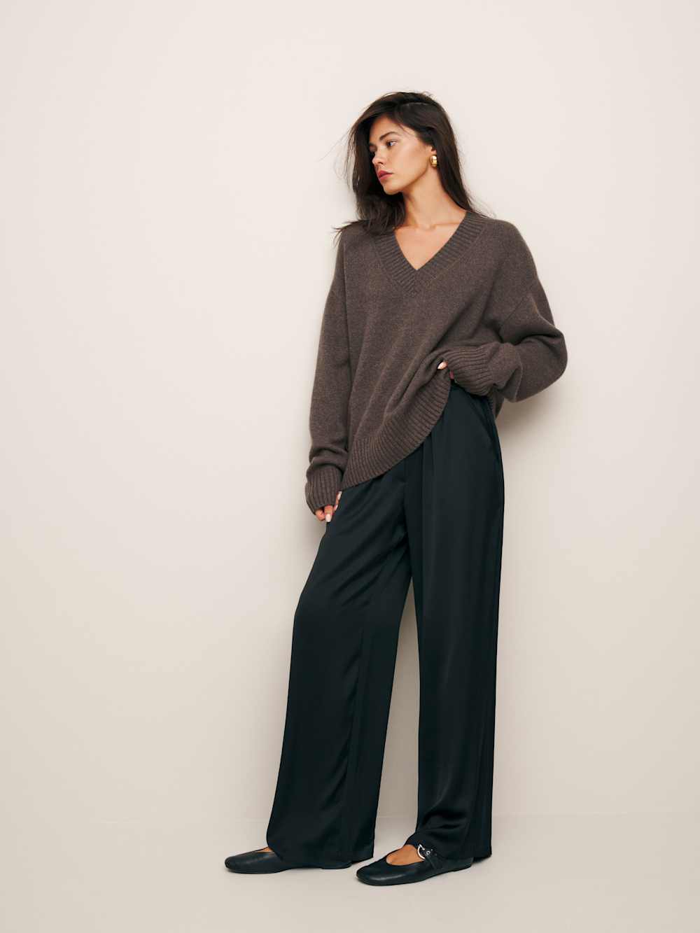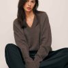 We’re just happy to know you’re cozy out there. Shop the Jadey Oversized V-neck Sweater from Reformation, a relaxed fitting sweater, with a V neckline.
