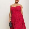 How classic. Shop the Jaelyn Dress ES from Reformation, a midi dress with a sweetheart neckline, fitted bodice, relaxed skirt, and adjustable tie straps.