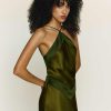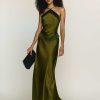 Center of attention. Shop the Jillian Silk Dress from Reformation, a sleeveless maxi dress with an adjustable halter-style neckline and open back.